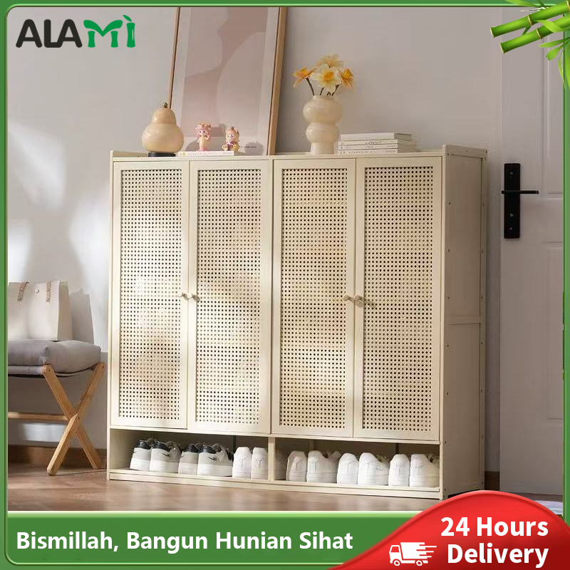 Alami Rak Sepatu Gaya Creamy Modern Pintu Masuk | Lemari Penyimpanan Multifungsi Anti Debu untuk Sepatu/Sepatu Boot | Ba