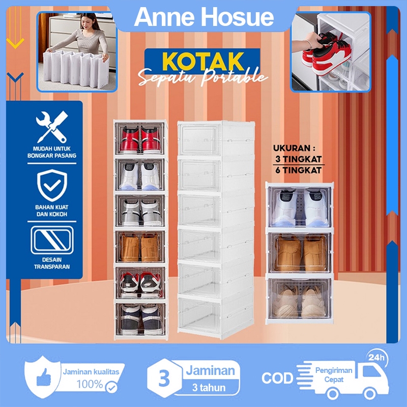 Anne House Kotak Sepatu Lipat Rak Susun Sepatu Anti Debu Box Sepatu Stackable Plastic Tebal Lemari Sepatu Serbaguna Kot