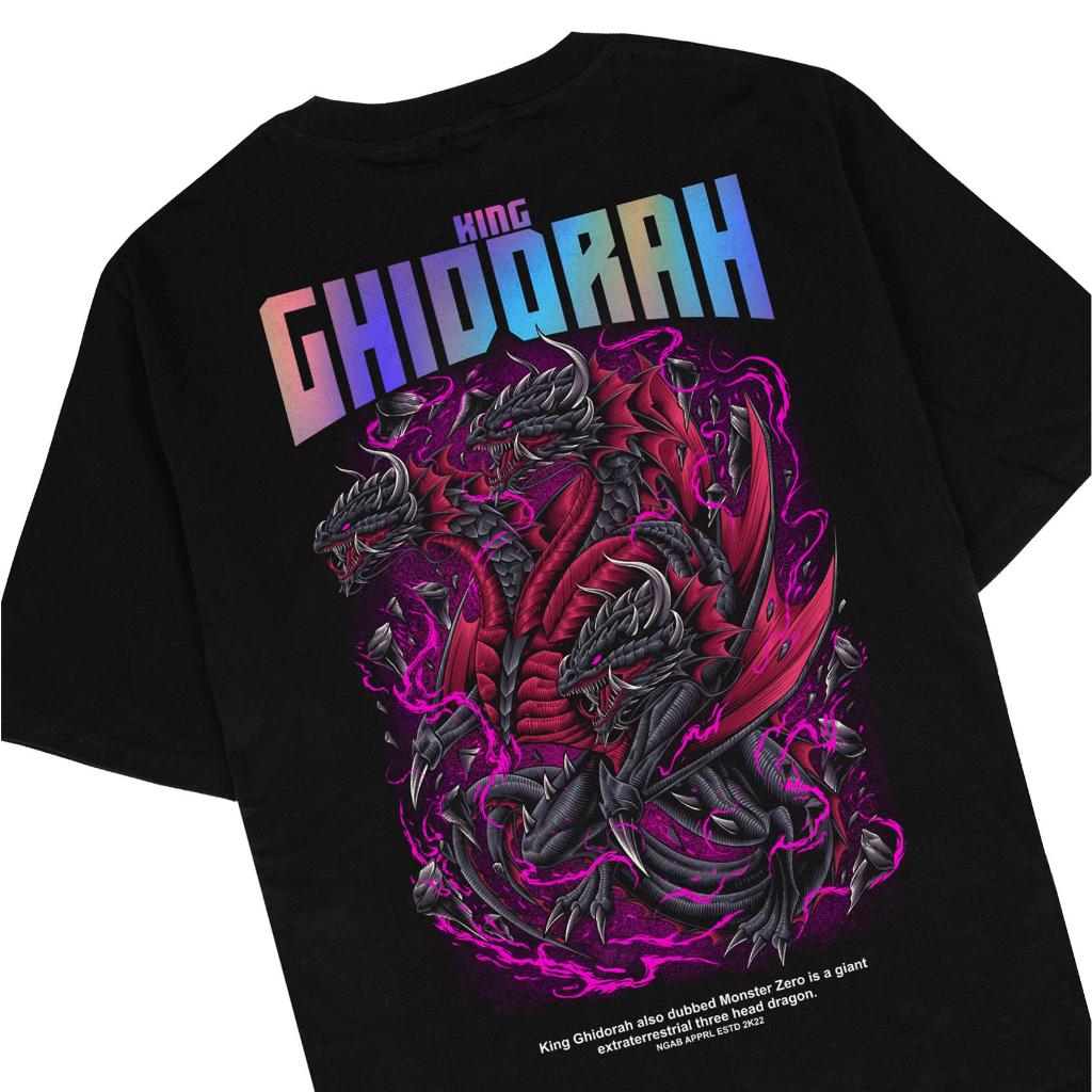 KAOS DEWASA REFLECTIVE RAINBOW KING GHIDORAH HITAM NB114 UNISEX PRIA WANITA COTTON COMBED 24S TERLARIS