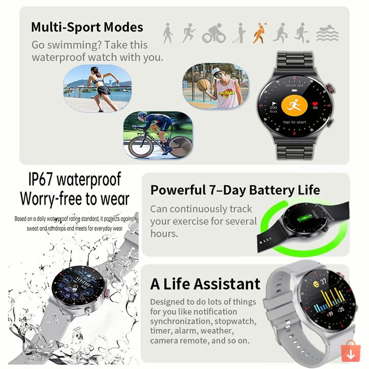LIGE ASLI JAM PINTAR PRIA LAYAR SENTUH PENUH OLAHRAGA TAHAN AIR JAM TANGAN SMARTWATCH ORIGINAL JAM TANGAN PRIA ANTI AIR
