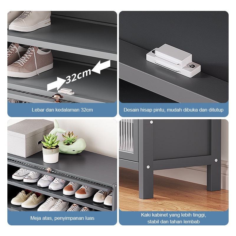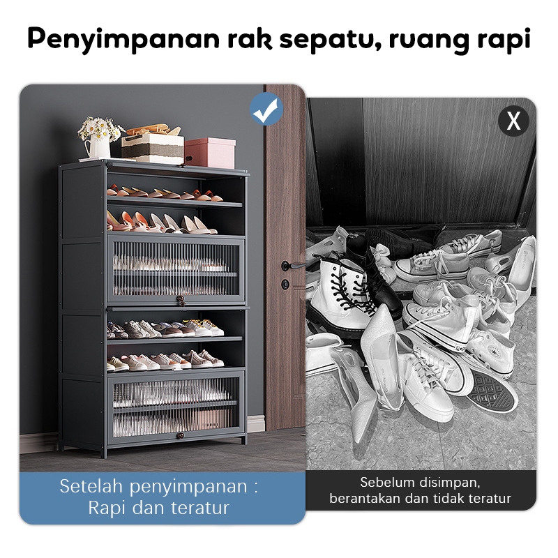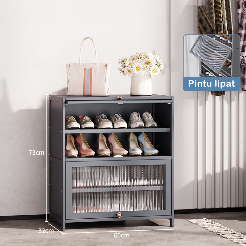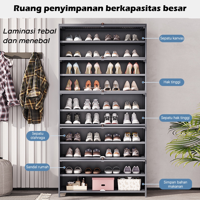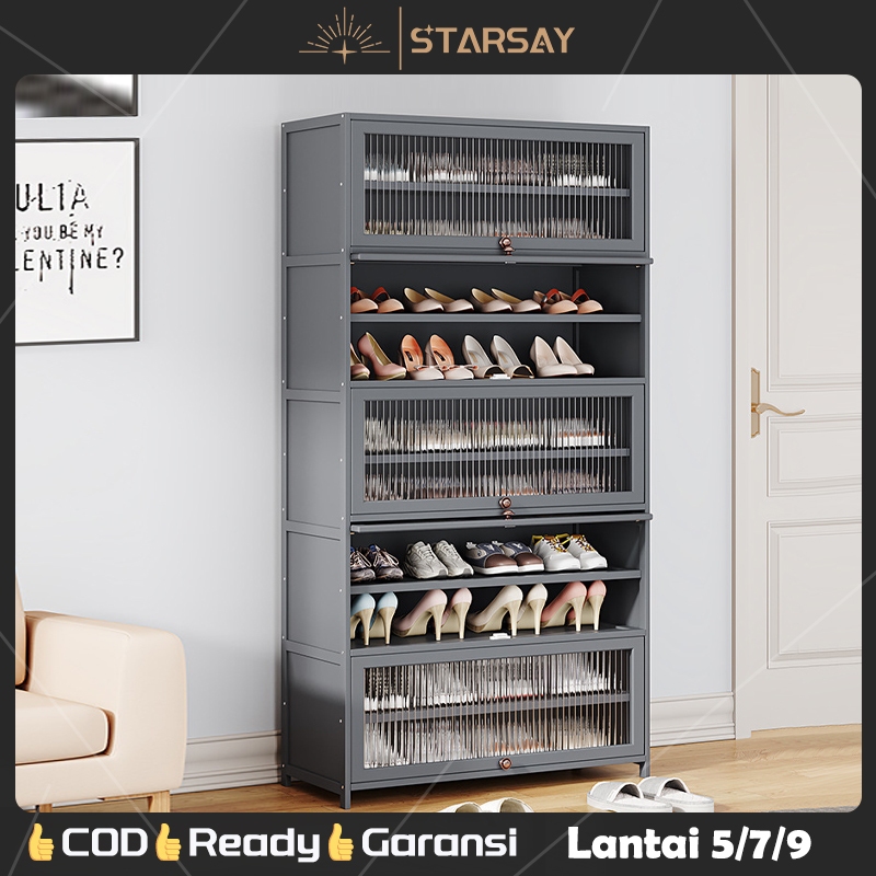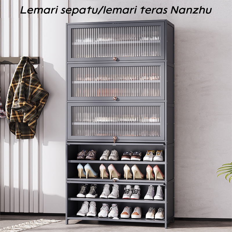 ⭐Garansi⭐Rak Lemari Sepatu Minimalis Bambu Susun Multilayer Tertutup Penyimpanan Shoe Cabinet ly