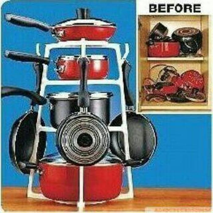 Serbagrosirmurah rak panci holder organizer cookware teflon wajan 4 susun dapur