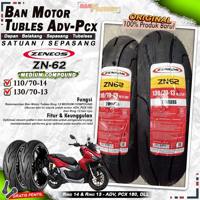 [ FREE ONGKIR ] Ban Motor ADV Zeneos ZN62 Ring 14 & Ring 13 Tubles Ban Motor Tubeless ADV PCX 160 Ring 14 Tubles