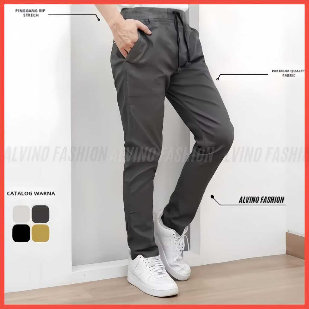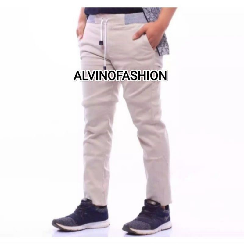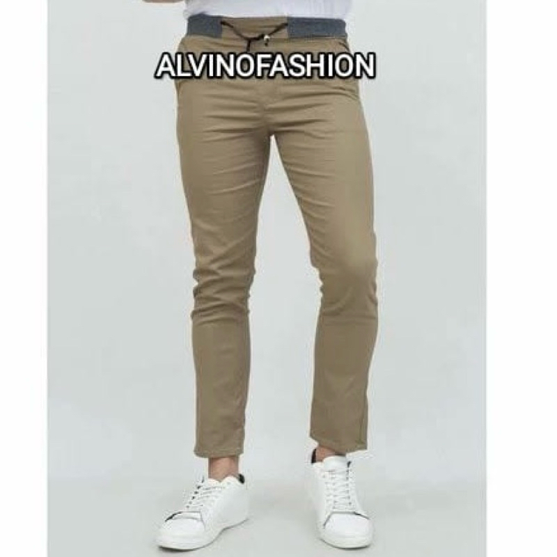 (Gratis Ongkir) [TERLARIS] CELANA CHINOS COWOK PANJANG KARET PINGGANG RIP KOLOR