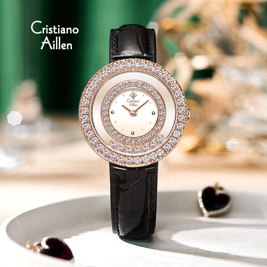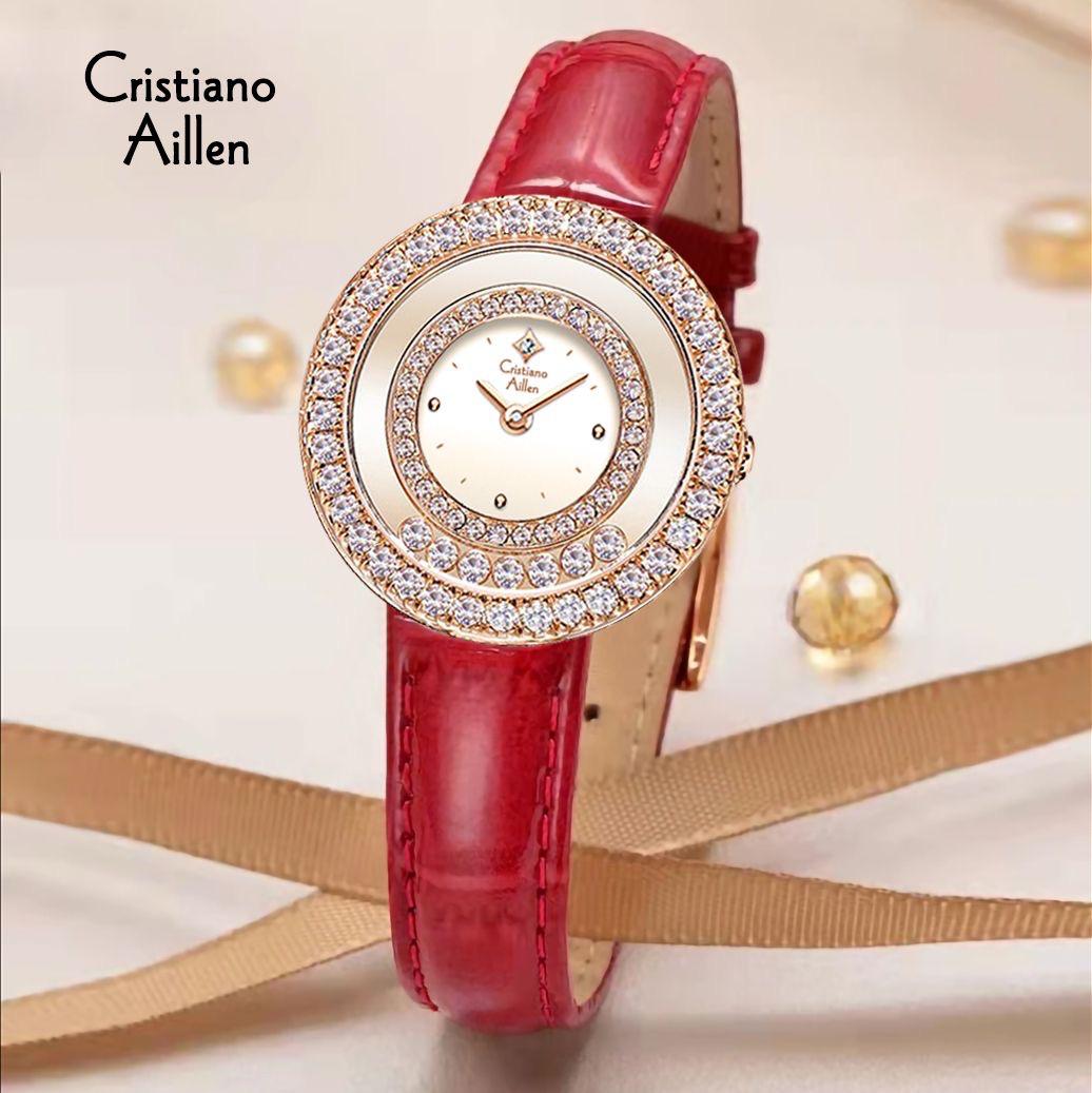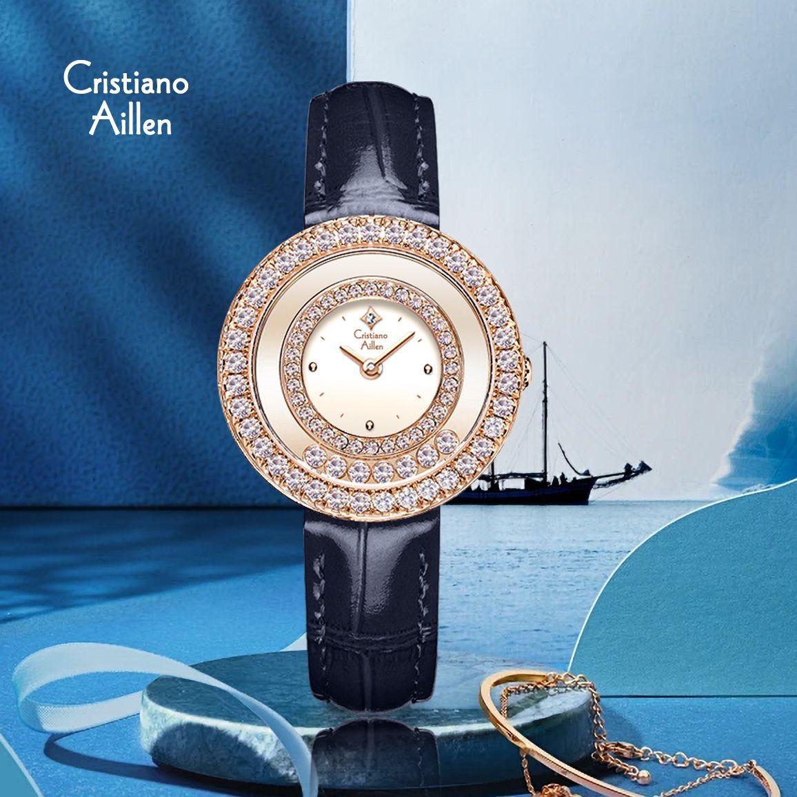 Jam Tangan Wanita Cristiano Aillen CA-676 Original Analog Watch Tali Kulit Free Box Garansi 1 Tahun