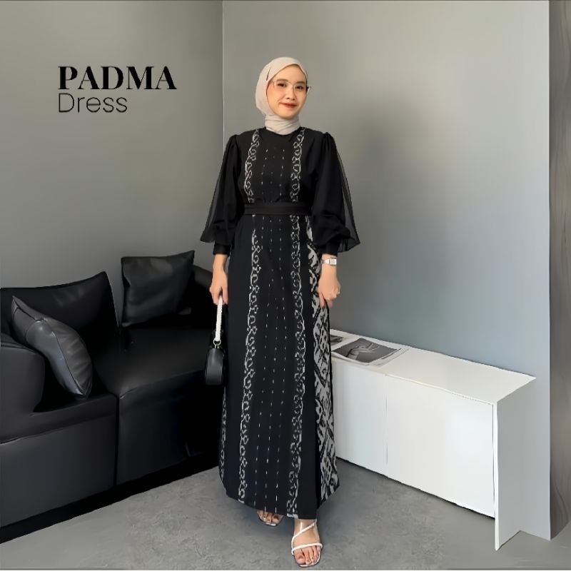 Dress Gamis Padma Black / Set Couple Tenun Padma / Baju Set Pasangan / Set Couple Kondangan / Sarimbit Keluarga