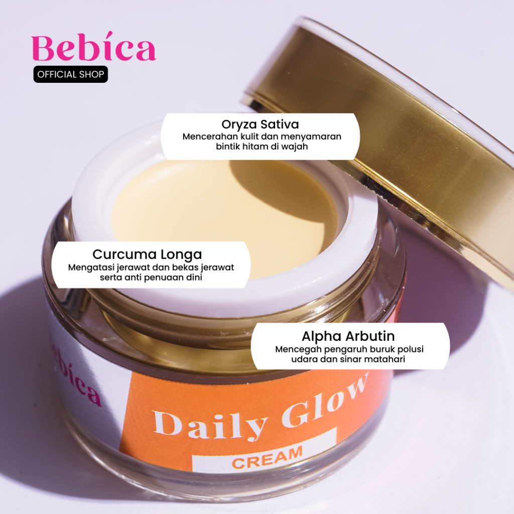 BEBICA Daily Glow - Krim Pagi Siang Membantu Mencerahkan Wajah Normal Kusam Berjerawat Flek Hitam dan Sensitif