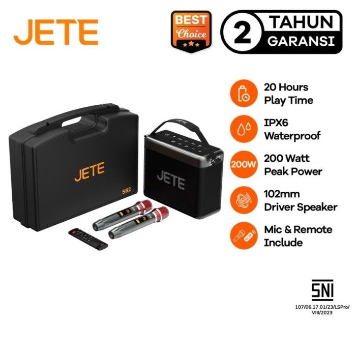speaker Bluetooth JETE SB2 Speaker Karaoke Bluetooth 2 Mic Wireless IPX6