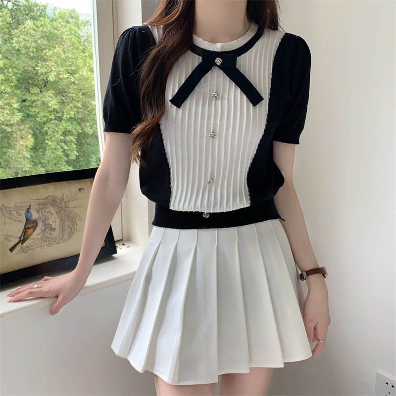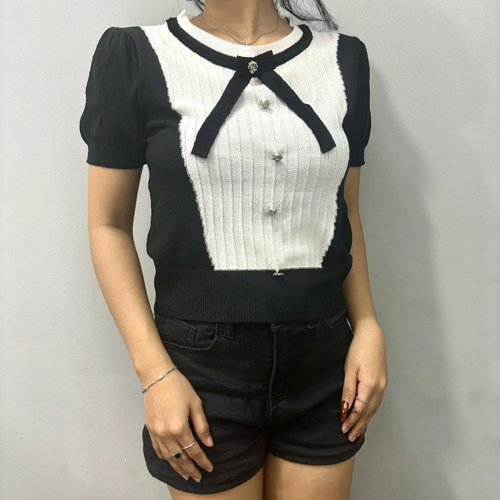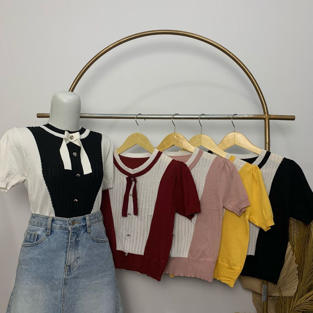 AJW Atasan Wanita Kekinian Dengan Pita Knit Premium HAG | Baju Wanita Korean Style Dengan Pita Lengan Pendek | Baju Atas