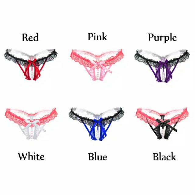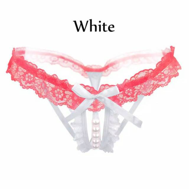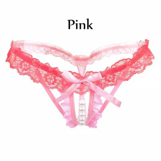 Celana Dalam WANITA G String Lace Open Crotch Dengan Hiasan Mutiara Model Pita