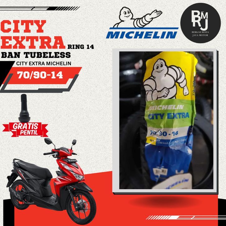 SEPASANG / BISA SATUAN BAN MOTOR MATIC MICHELIN CITY EXTRA Ring 14 TUBELES DEPAN BELAKANG BEAT VARIO MIO GENIO