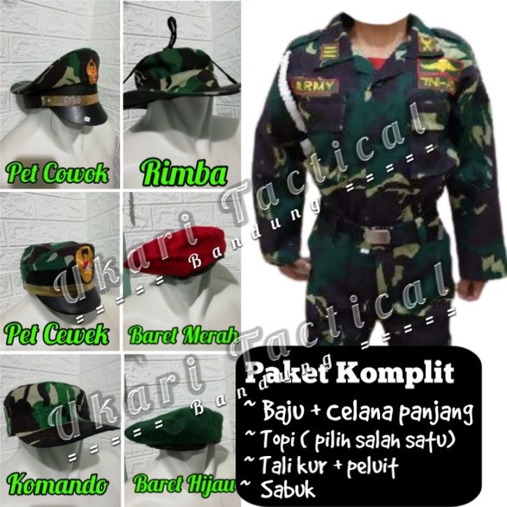 PAKET KOMPLIT Baju TNI anak kostum profesi karnaval seragam tentara anak tk paud
