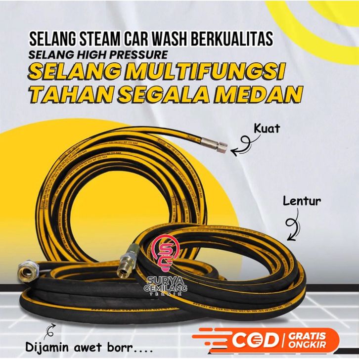 Selang Steam Cuci Mobil Motor Car Wash Selang Cuci Mesin Steam CNP & GRUNDFOS High Pressure Lapis Kawat