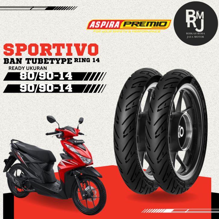 Sepasang / Satuan Ban Motor Matic Aspira Premio Sportivo Ring 14 80/90 dan 90/90 BEAT MIO VARIO GENIO DEPAN BELAKANG