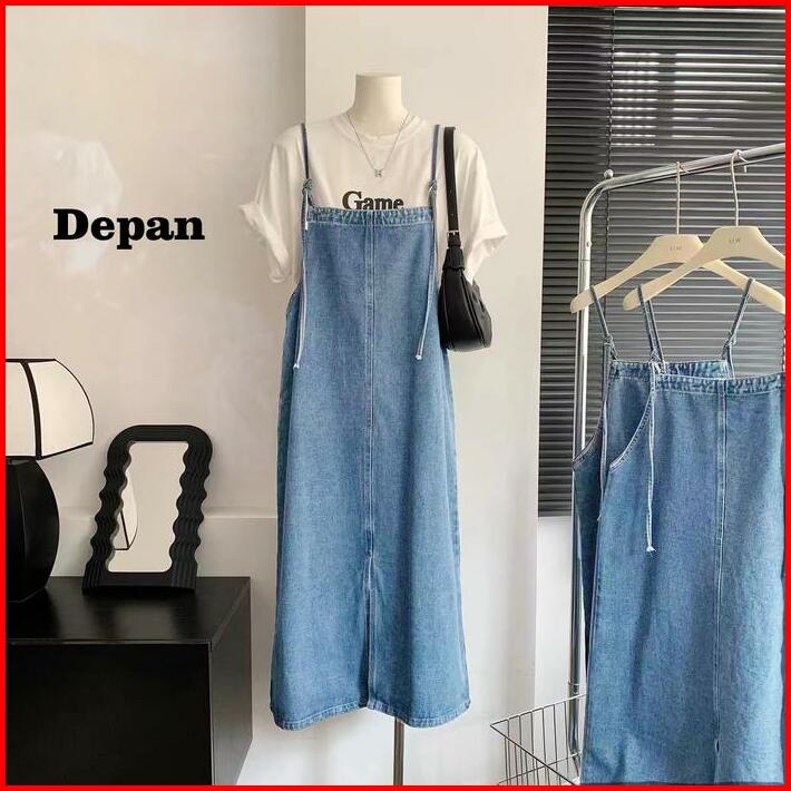 Jeans.cewekoverall Jeans Wanita Dress Korean Style Skirt Midi Dress Long Skirt Rok Denim Panjang Casual Retro Biru Gaun