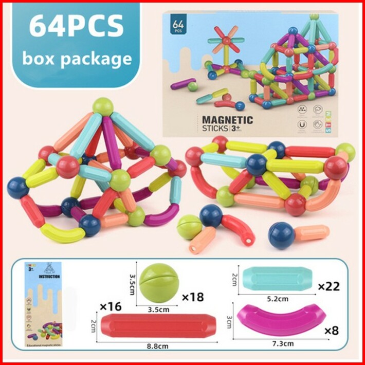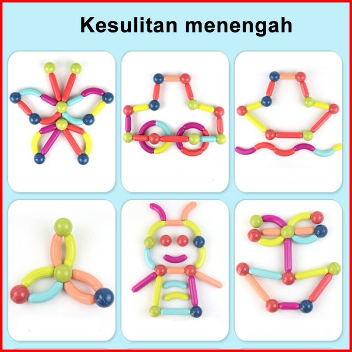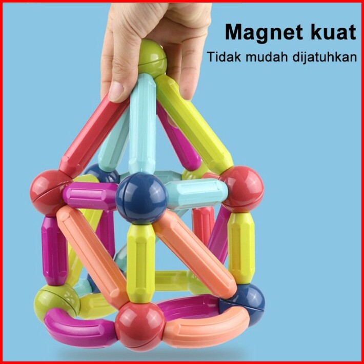 Mainan Edukasi Montessori Anak Diy Building Blocks Magnet Stik Bola
