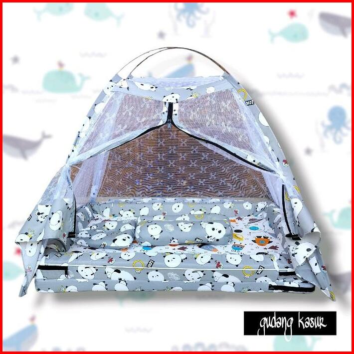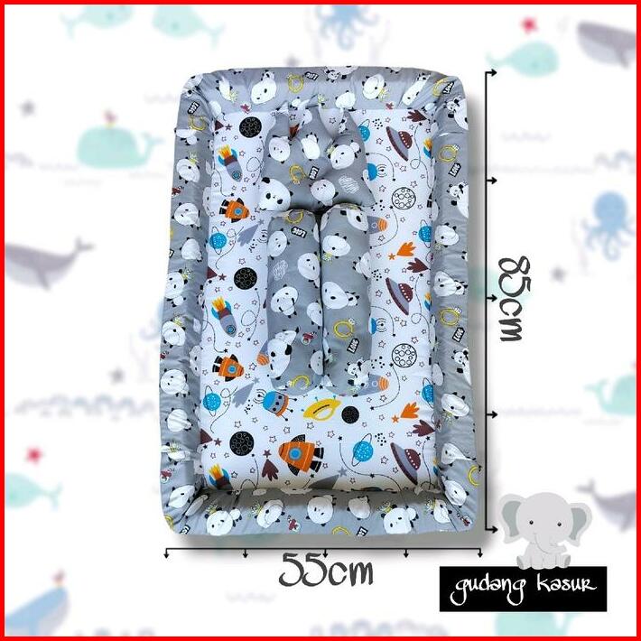 Kasur Bayi Plus Fiber Motif Roket Panda Abu Bayi Baru Lahir Balita Cewek Cowok Bantal Bunda Empuk Guling Biru Putih Kela
