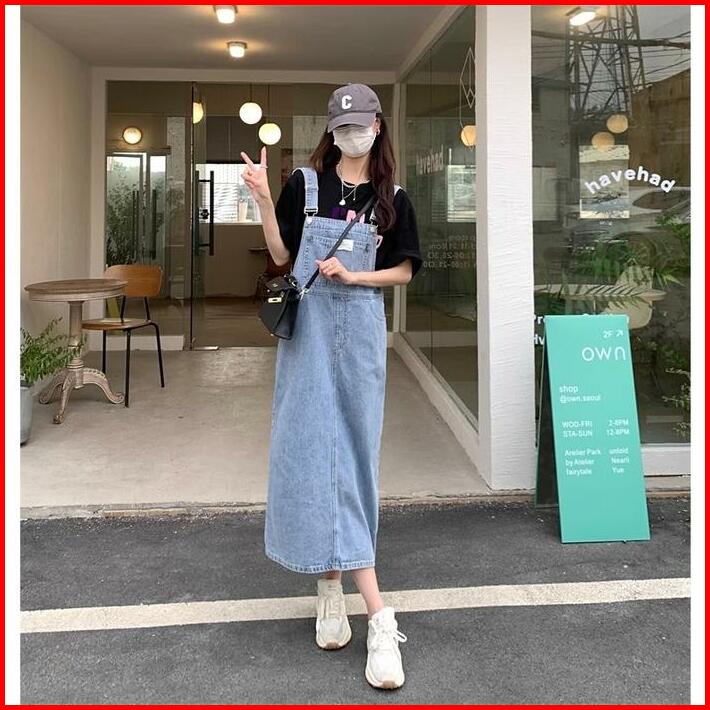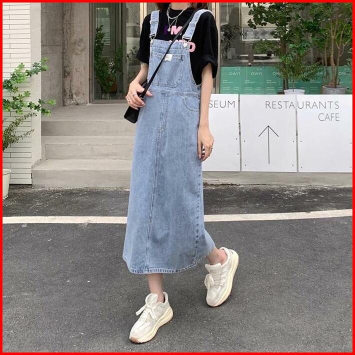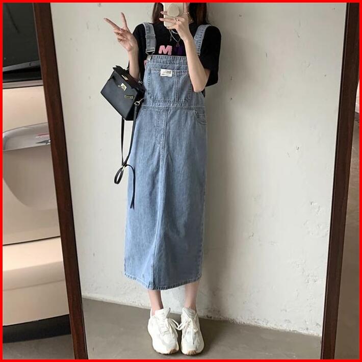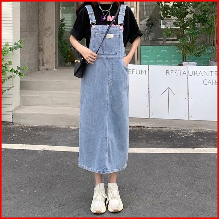 Overall Kaki Lebar Longgar Pinggang Tinggi Gaya Korea Wanita---overall Rok Jeans Wanita