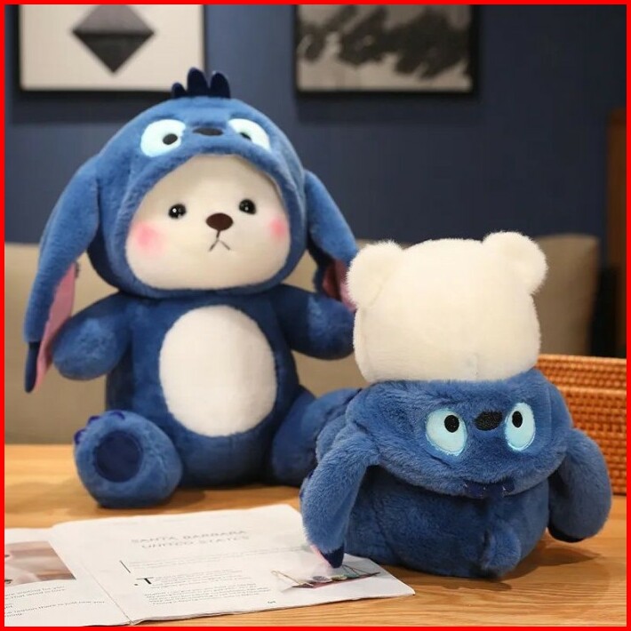 Boneka Beruang Hoodie Stitch Ukuran 30cm Bahan Plush Import Hadiah