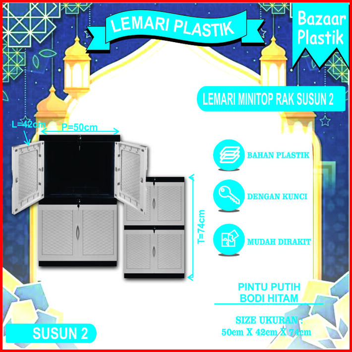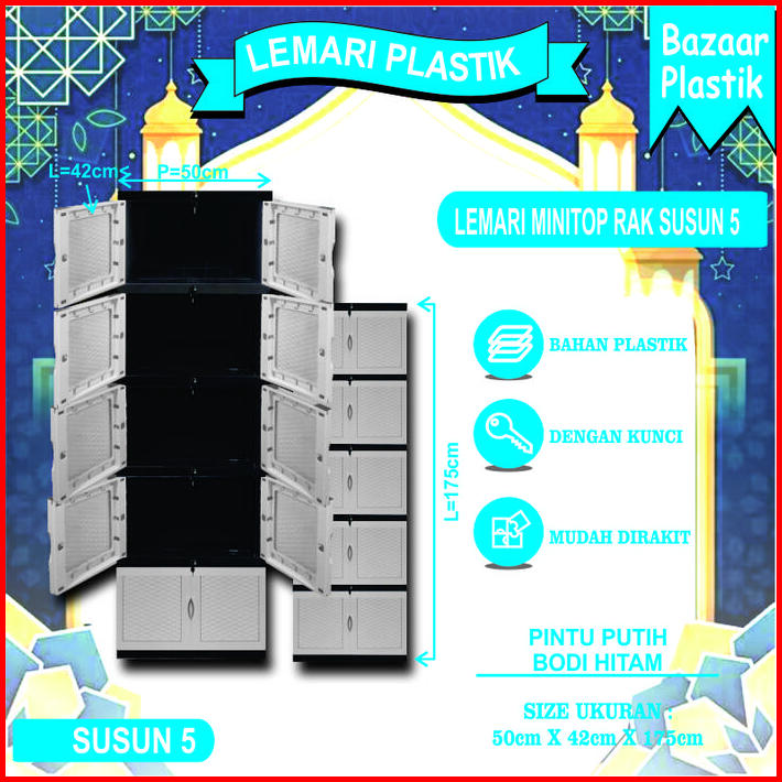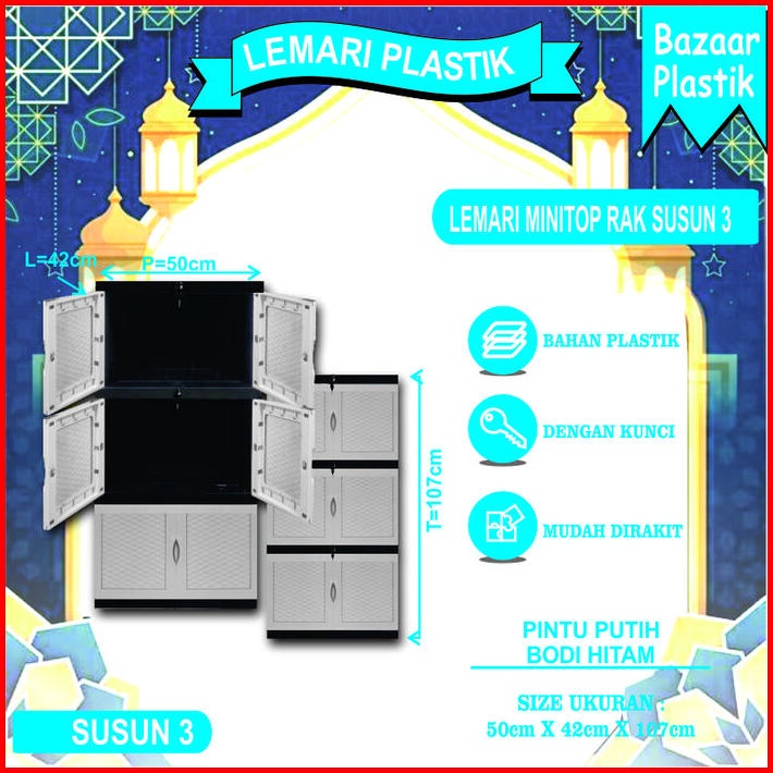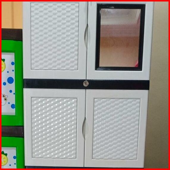 Lemari Baju Plastik Lemari Pakaian Plastik Lemari Plastik Susun Motif Timbul Dengan Kaca Dan Full Kunci 2 Susun 3 Susun