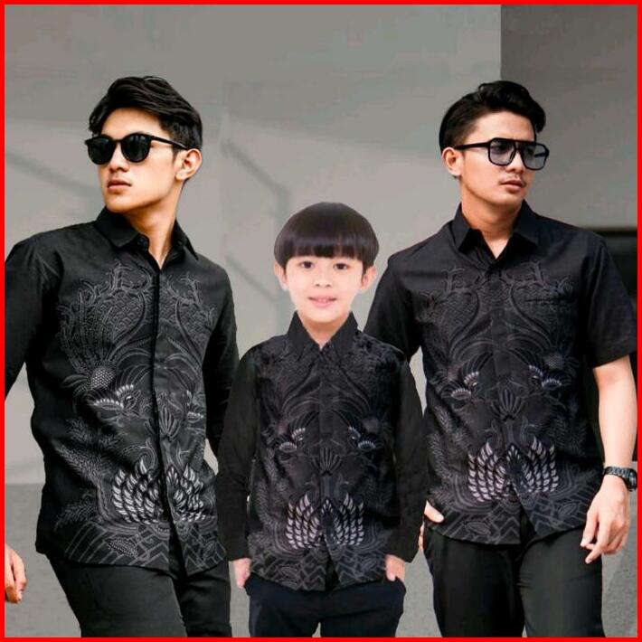 Baju Batik Couple Ayah Dan Anak Laki Laki Motif Pusaka Hitam Modern Terbaru Lembut Katun Hem Casual Cowok Atasan Panjang