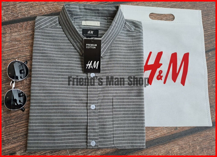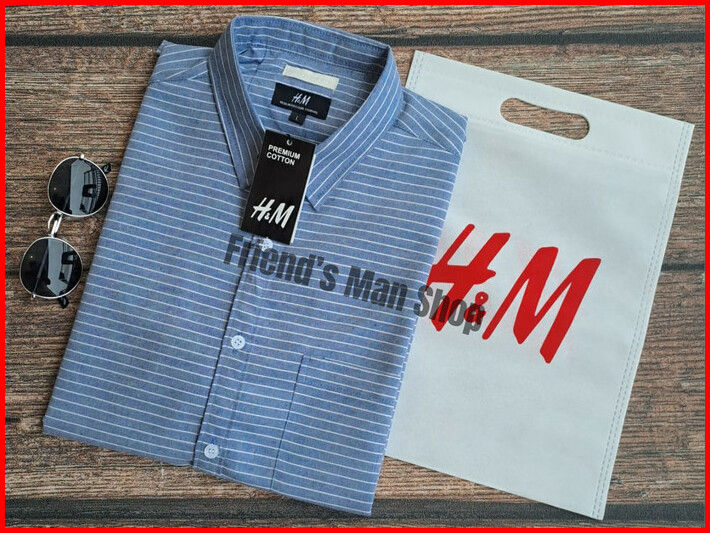 Kemeja H M Pria Full Kancing Kemeja Pria Motif Garis Salur Kemeja Pria Catton Oxford Lengan Pendek