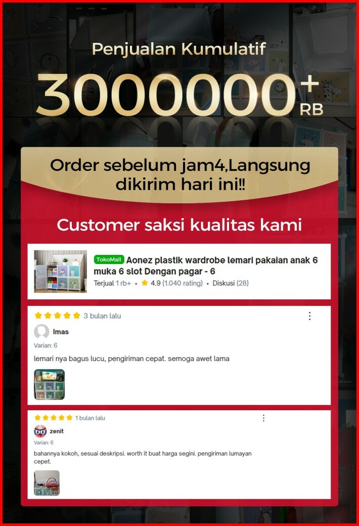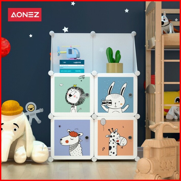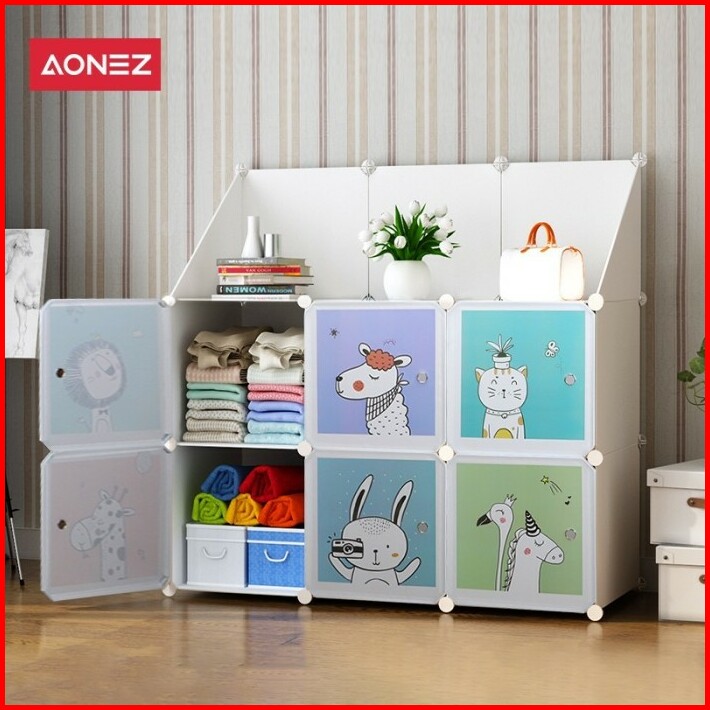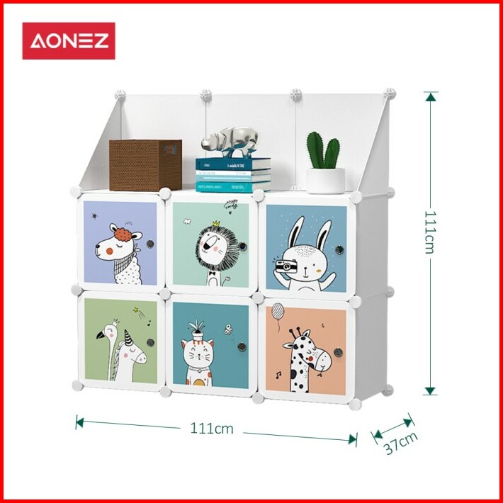 Aonez Plastik Wardrobe Lemari Pakaian Anak 6 Muka 6 Slot Dengan Pagar