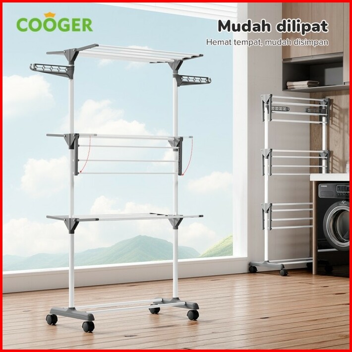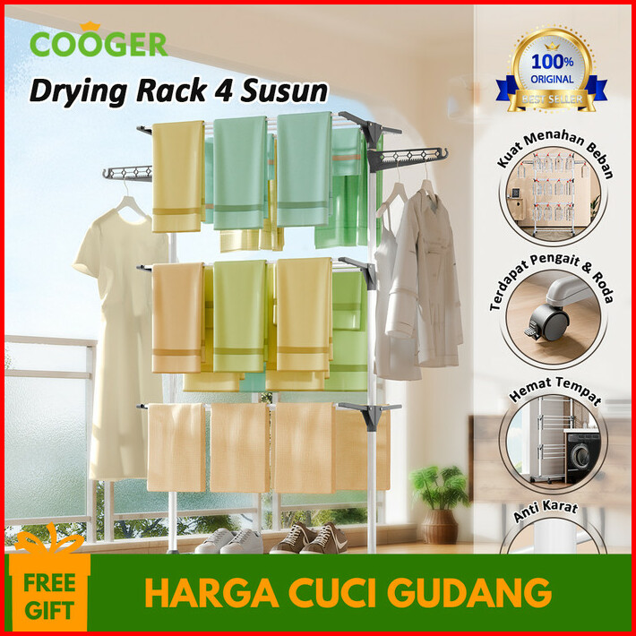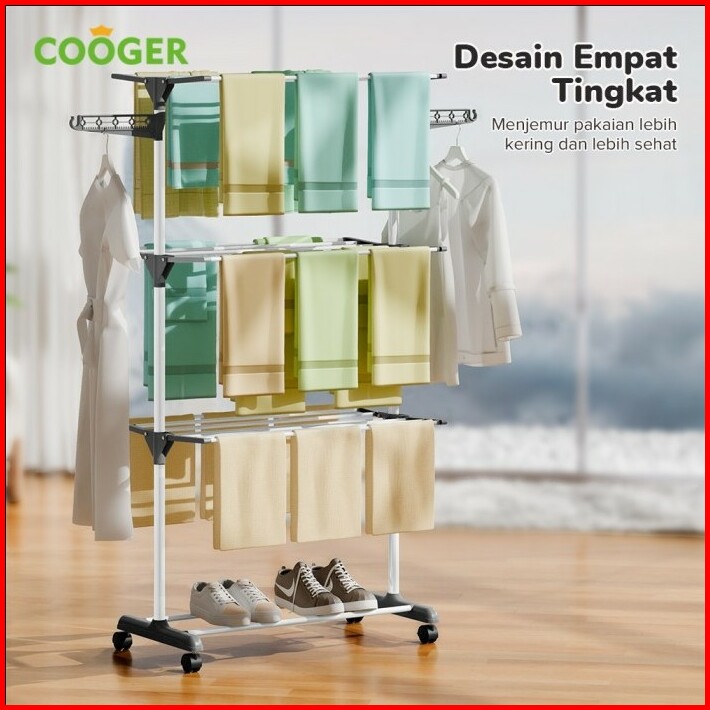 Cooger Rak Jemuran Baju Stainless Steel Rak Jemuran Handuk 4 Susun