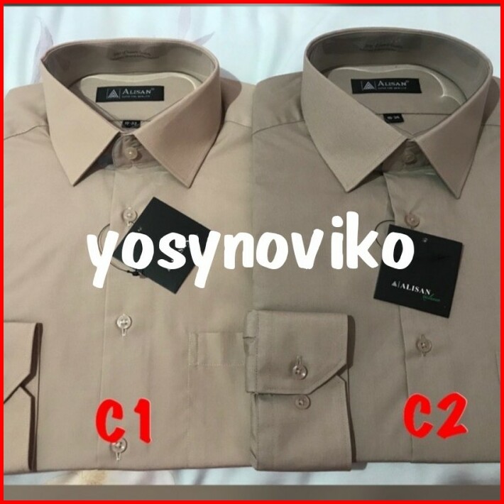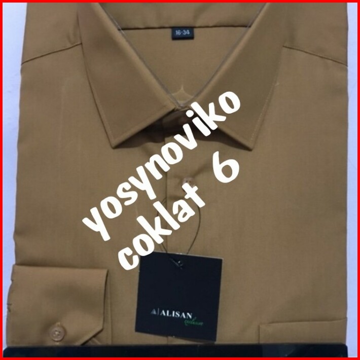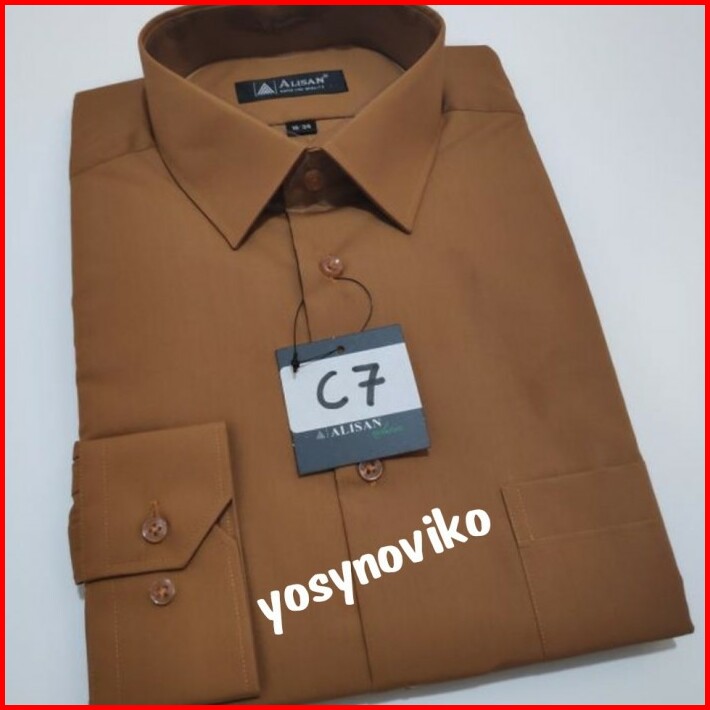 Kemeja Modern Pria Lengan Panjang Alisan Polos Coklat
