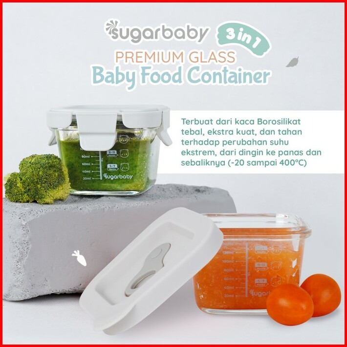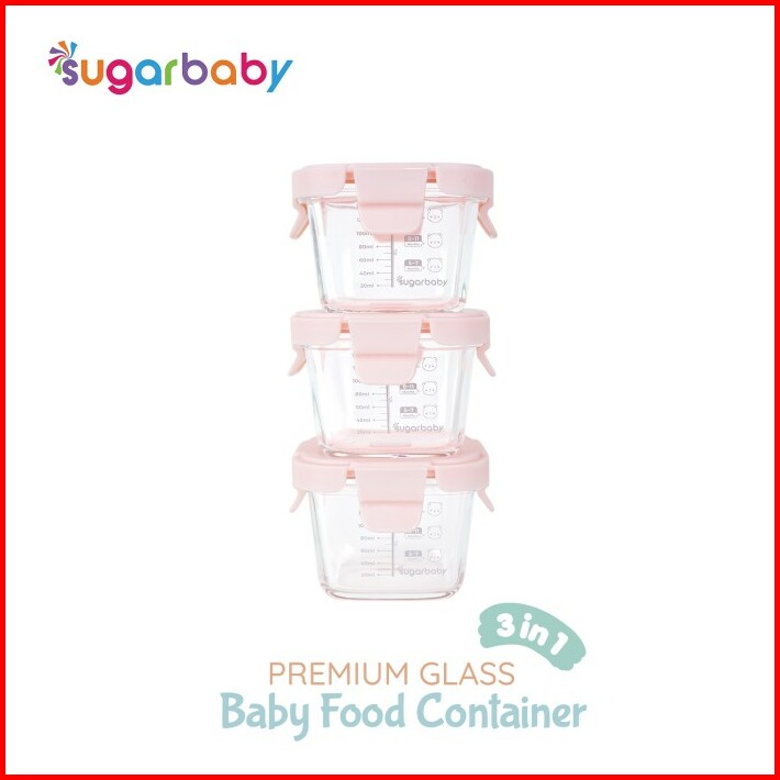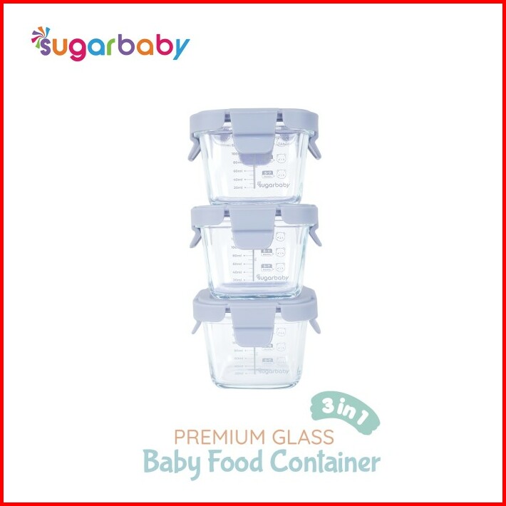 Sugar Baby Premium Glass Jar Baby Food Container 3 Pcs Bpa Free Peralatan Makan Bayi Mpasi Wadah Mangkok Bayi Silicone L