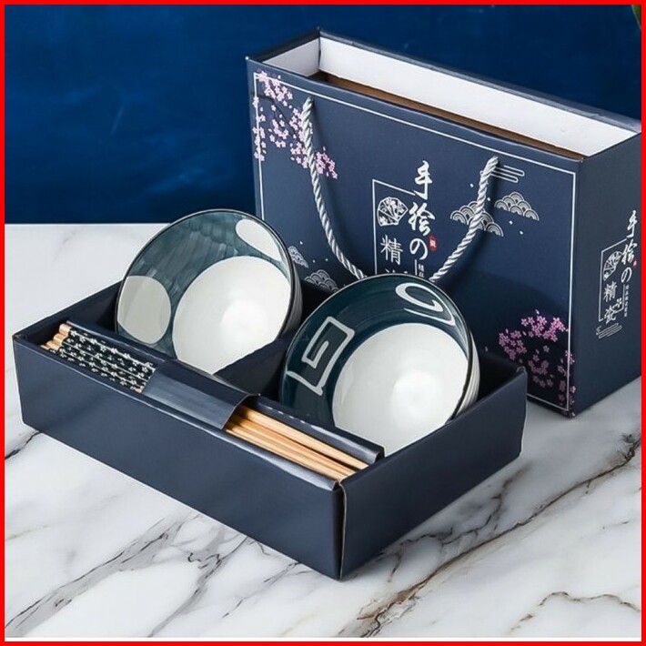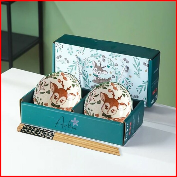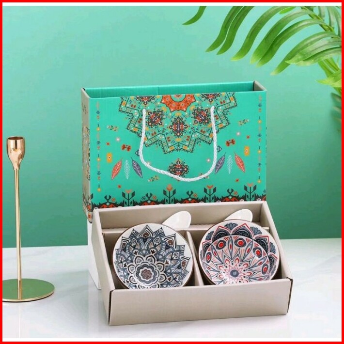 Aveline Souvenir Mangkok Set Premium Peralatan Makan Porselen Biru