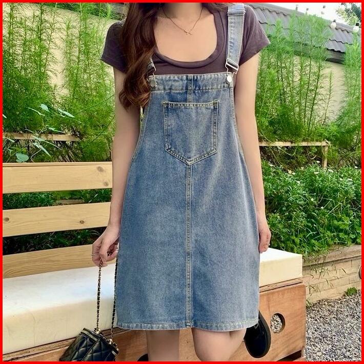 Beevalue Jumpsuit Jeans Overall Wanita Rok 3 4 Korean Style Bahan Denim Premium Outfit Wanita Kekinian Overall Rok Denim