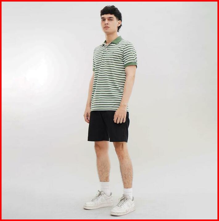 Matsuda Baju Kaos Polo Shirt Dewasa Stripe Pria Kerah Katun Zama H.green