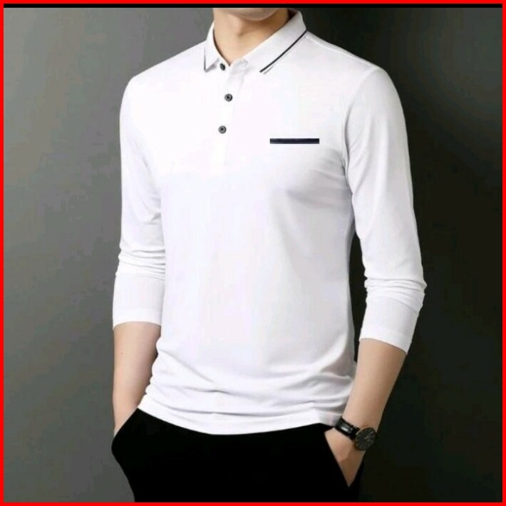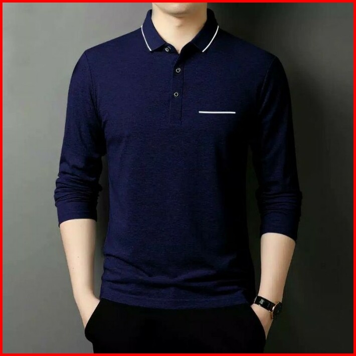 Kaos Berkerah Pria Kaos Polo Lengan Panjang Pria Bahan Cotton Combed