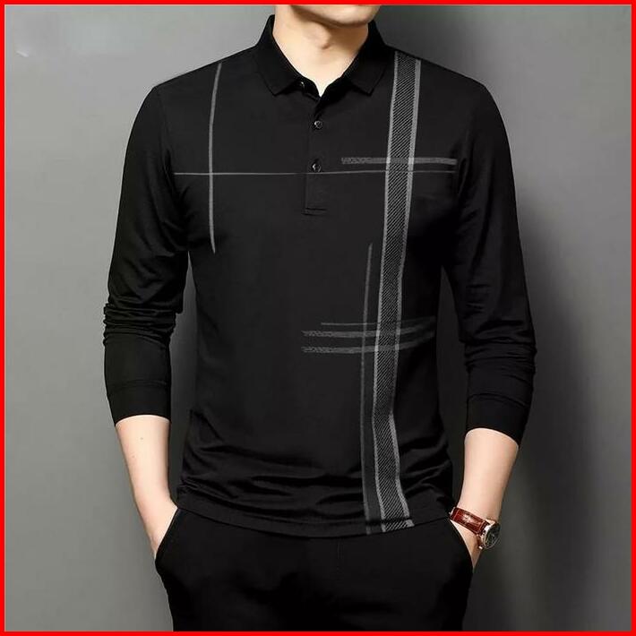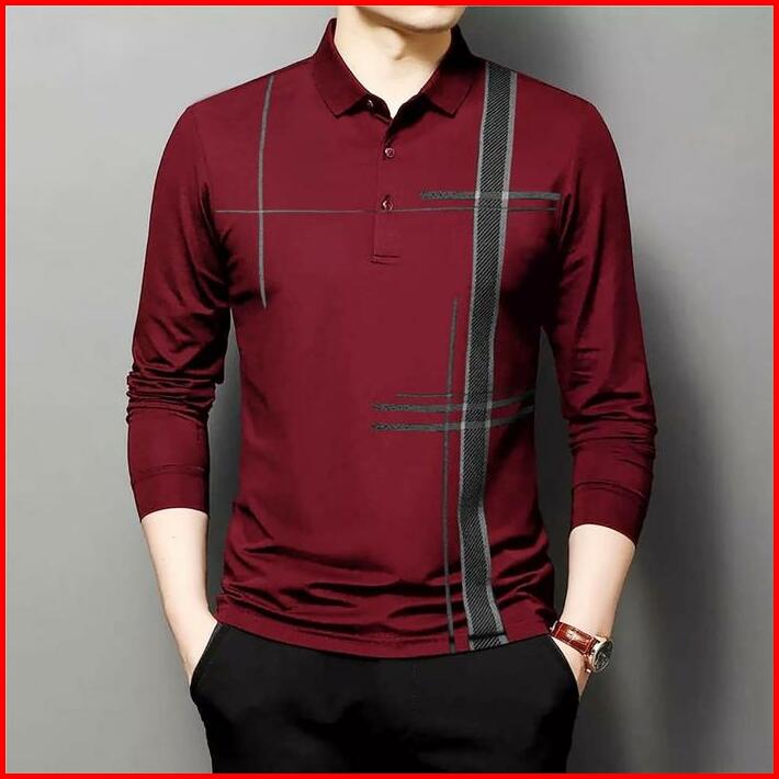 Kaos Berkerah Polo Pria Lengan Panjang Savos Motif Sablon Garis Santai