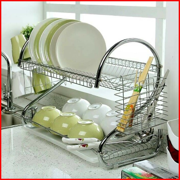 Rak Piring Tempat Gantung Gelas Sendok Minimalis Stainless Anti Karat
