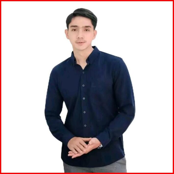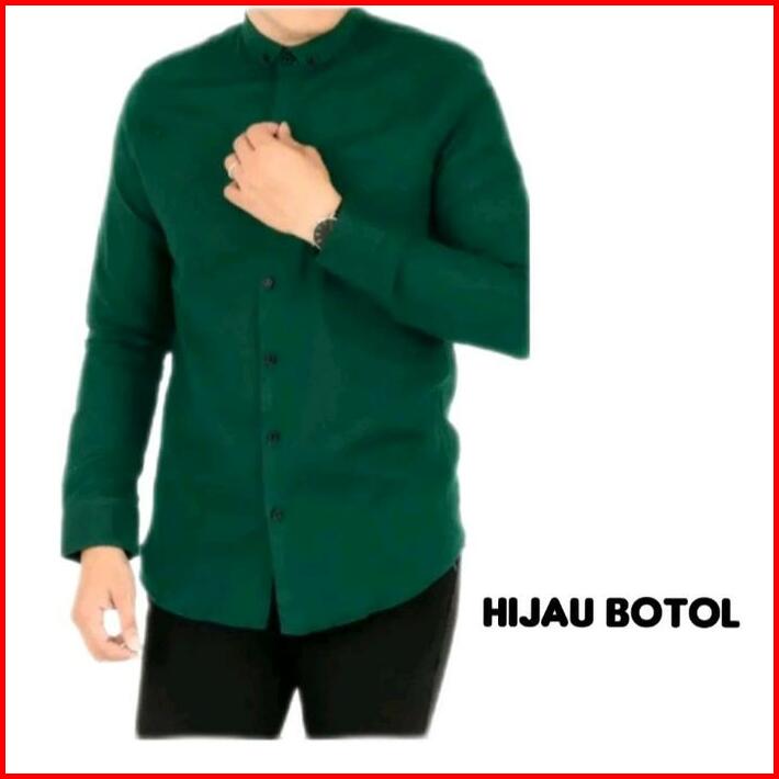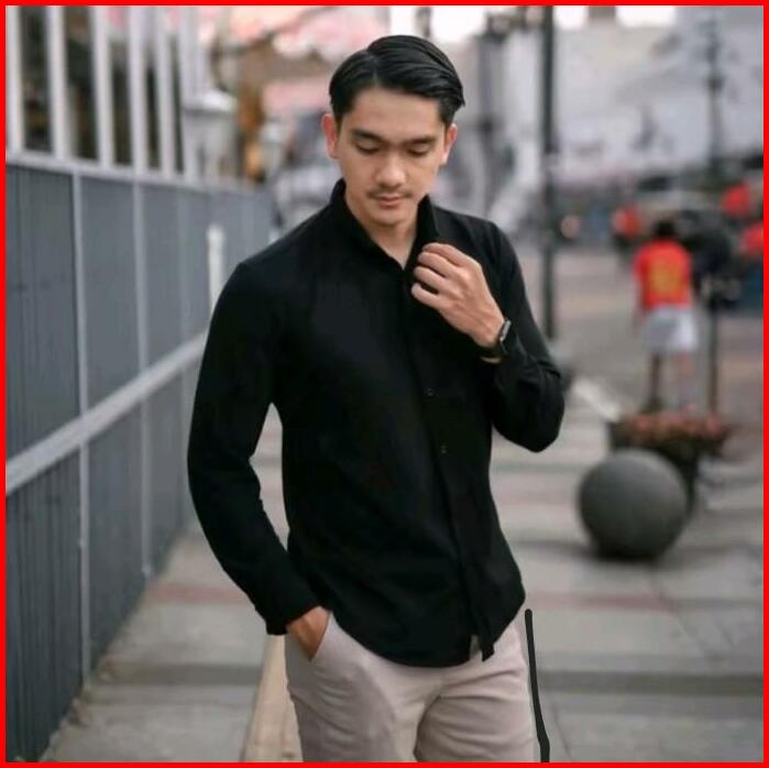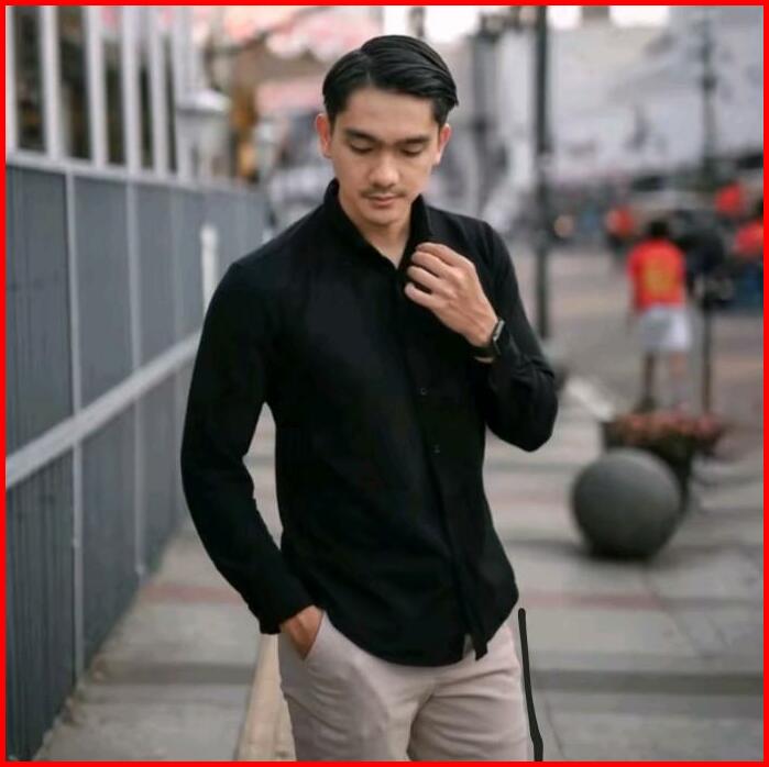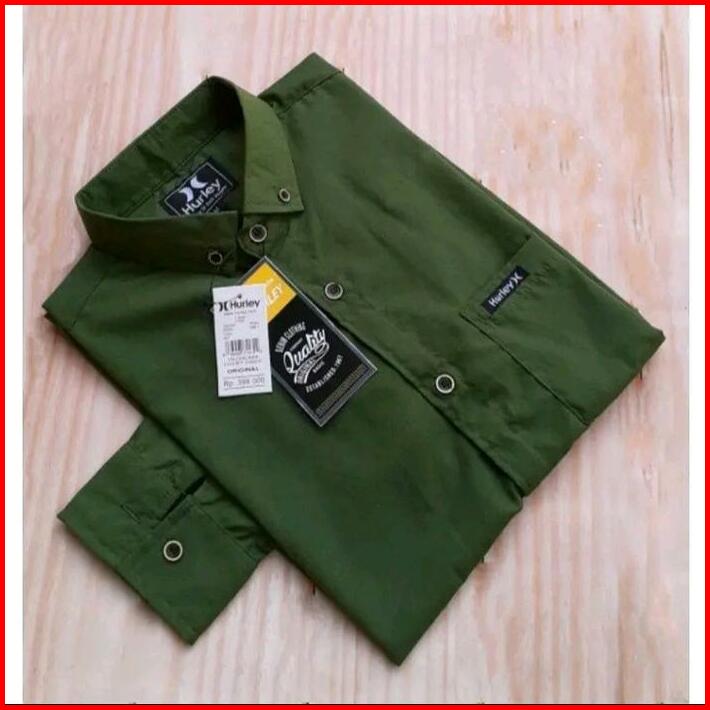 Kemeja Hurley Pria Lengan Panjang Polos Warna Hitam