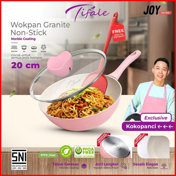 Kokopanci Pink 20cm Tifale By Hz 20cm Joy Series Pastel Granite Fry Pan 20cm Anti Lengket Handle Bakelite Silicone Anti