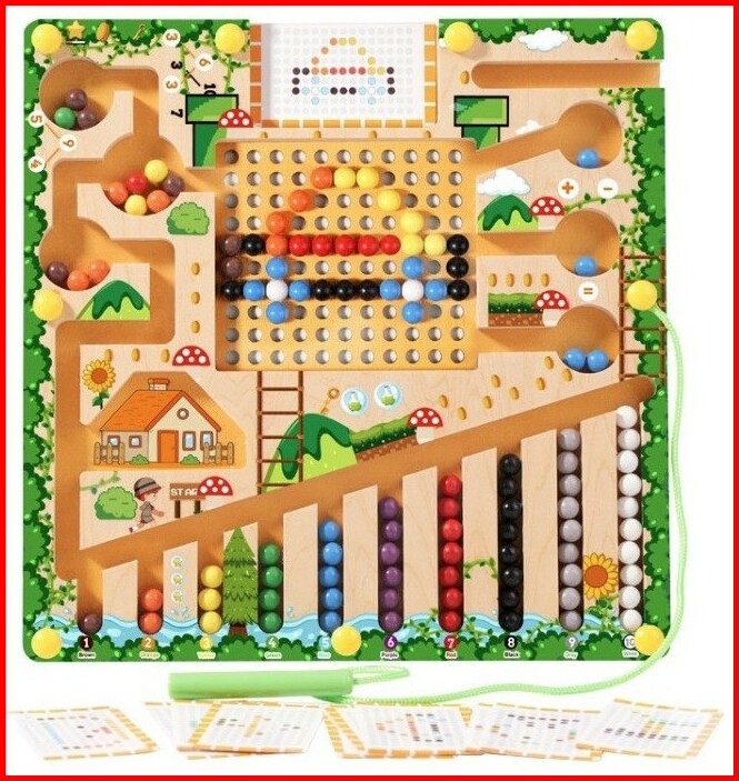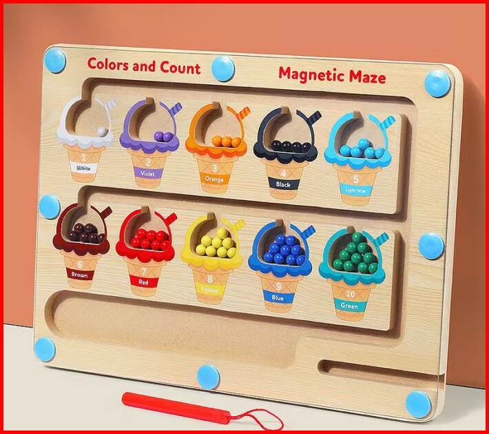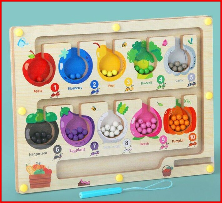 Mainan Sortir Warna Magnet Kayu Puzzle Maze Montessori Edukasi Anak