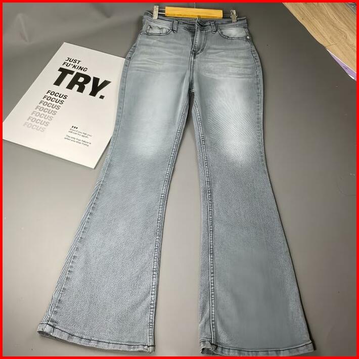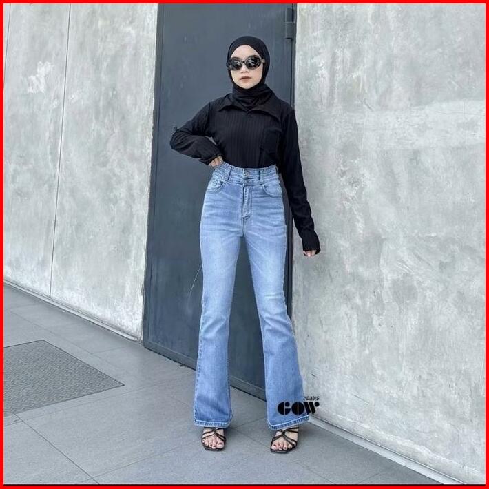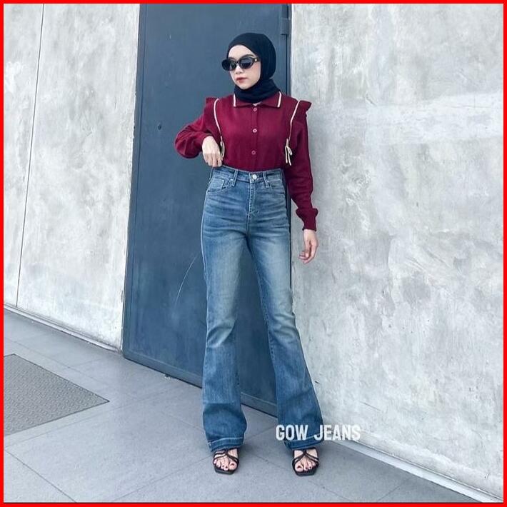 Up Jeans Cutbray Haigwaist Celana Panjang Wanita Warna Retro Streatch