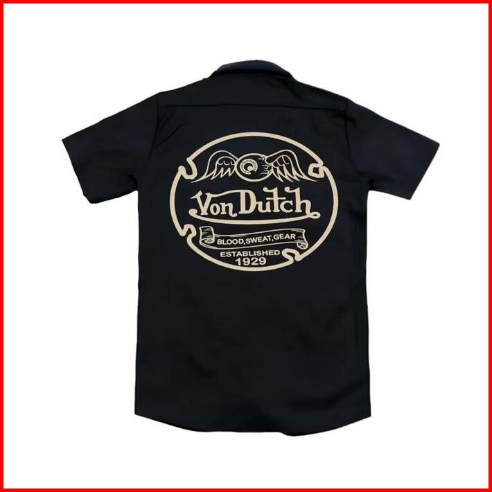 Kemeja Kerja Workshirt Binz Clothing Von Dutch Pria Wanita Hitam