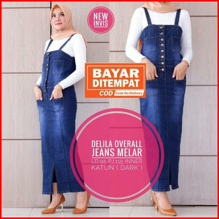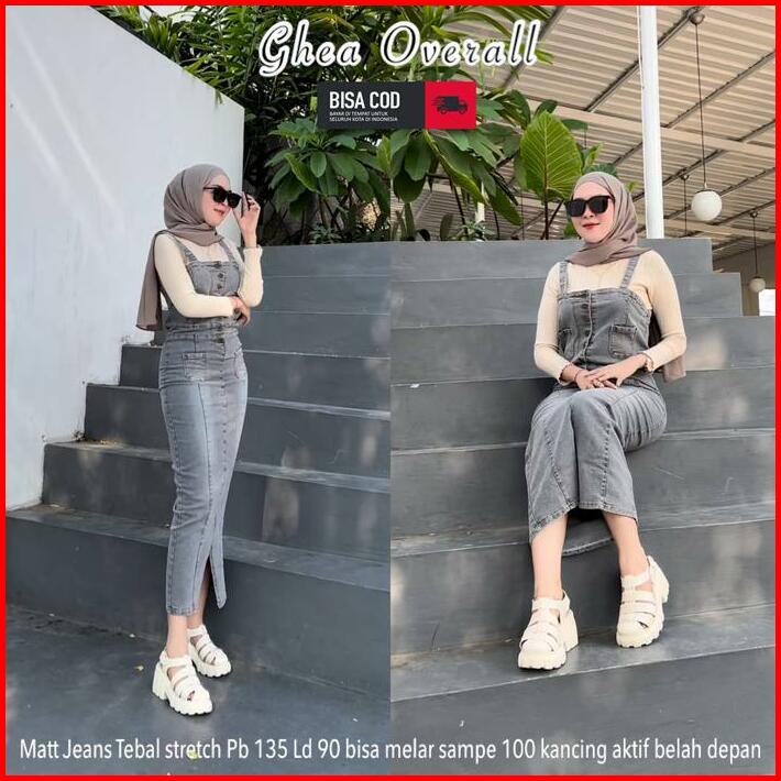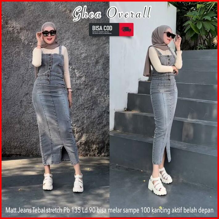 Overall Jumbo Rok Jeans Span Jumspuit Jeans Stretch Ghea Baju Kodok Kancing Playsuit Melar Wanita Panjang Mesin Dicuci R