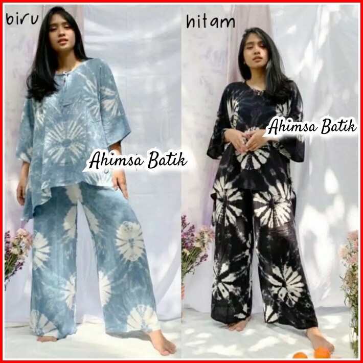 Setelan Baju Celana Blus Sayap Harina Shibori Batik Handmade Cantik