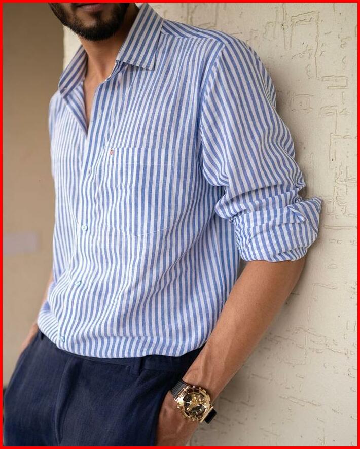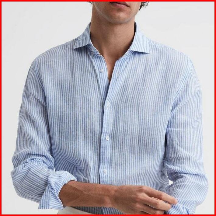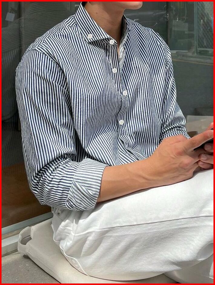 Kemeja Pria Stripe Garis Lengan Panjang Simple Perfect Bahan Katun Premium Best Seller