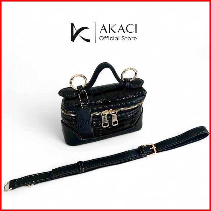 Tas Selempang Wanita Grace Akaci Hand Bag 10-8371 Bahan Croco Glossy 1 Ruang Tas Mini Muat Hp Lucu Elegan Mewah Murah Be