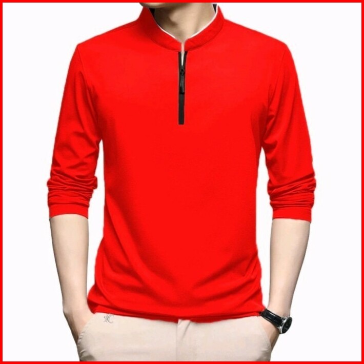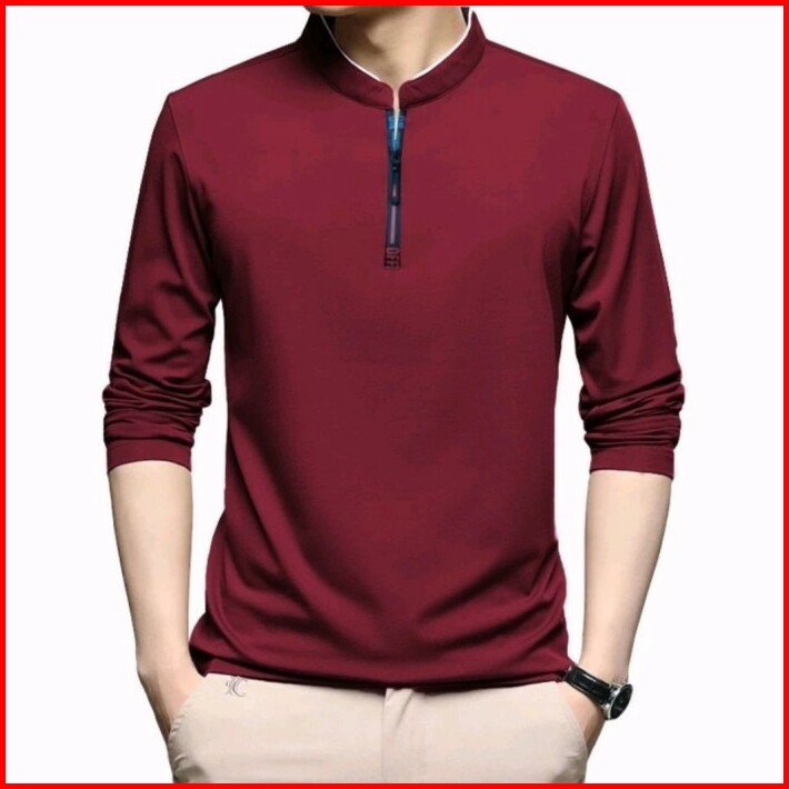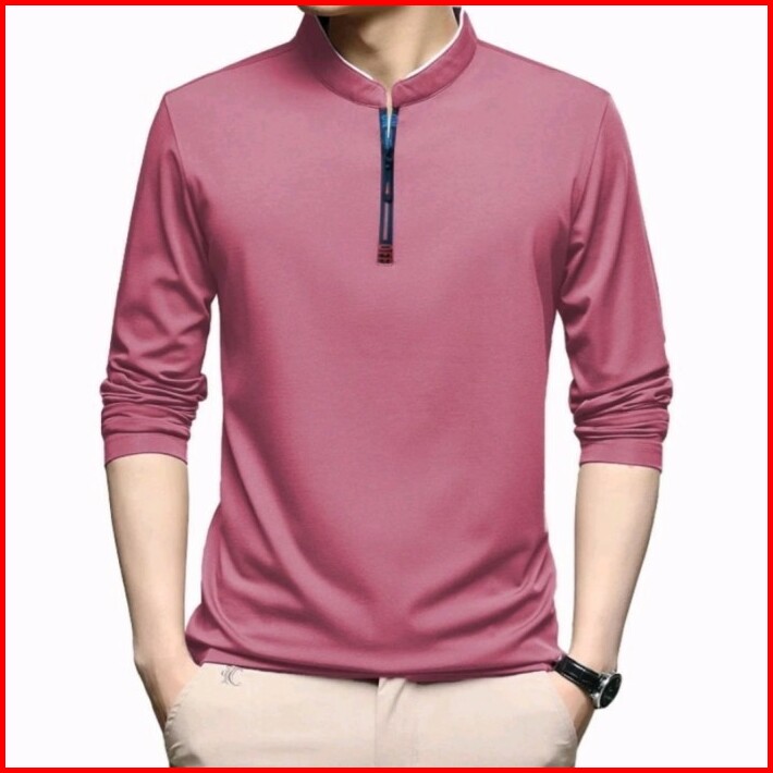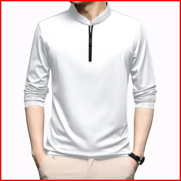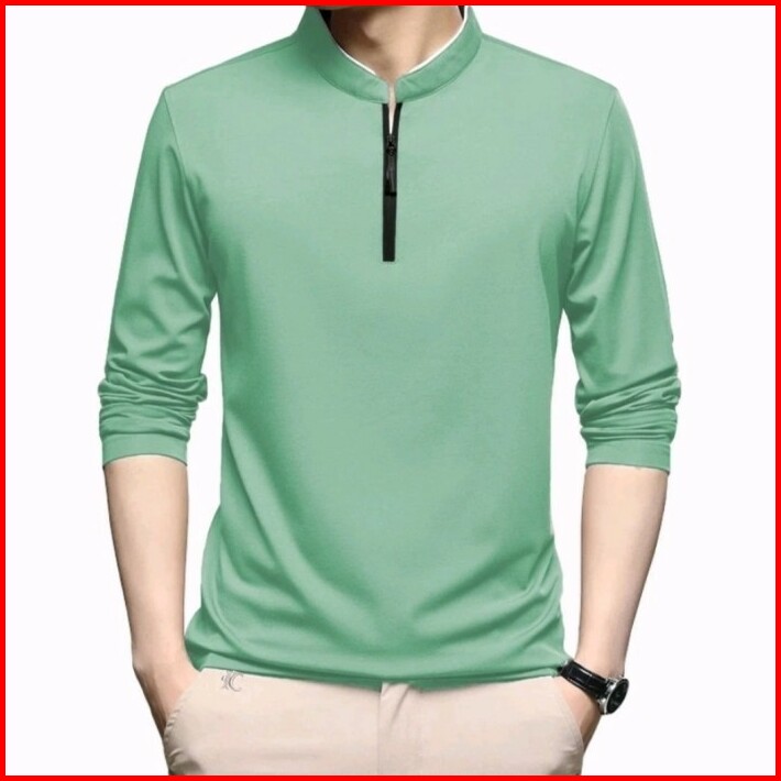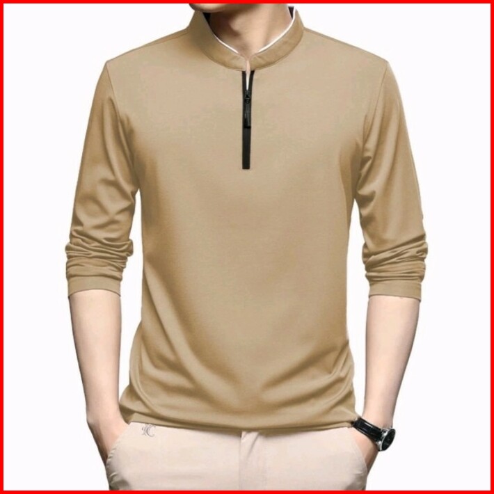 Baju Kaos Shirt Pria Model Terbaru Variasi Resleting Lengan Panjang Tbb73