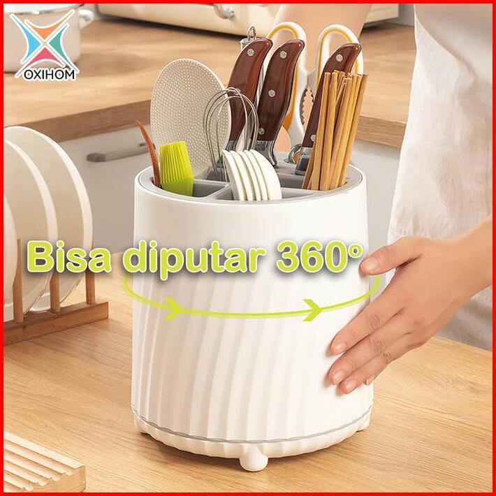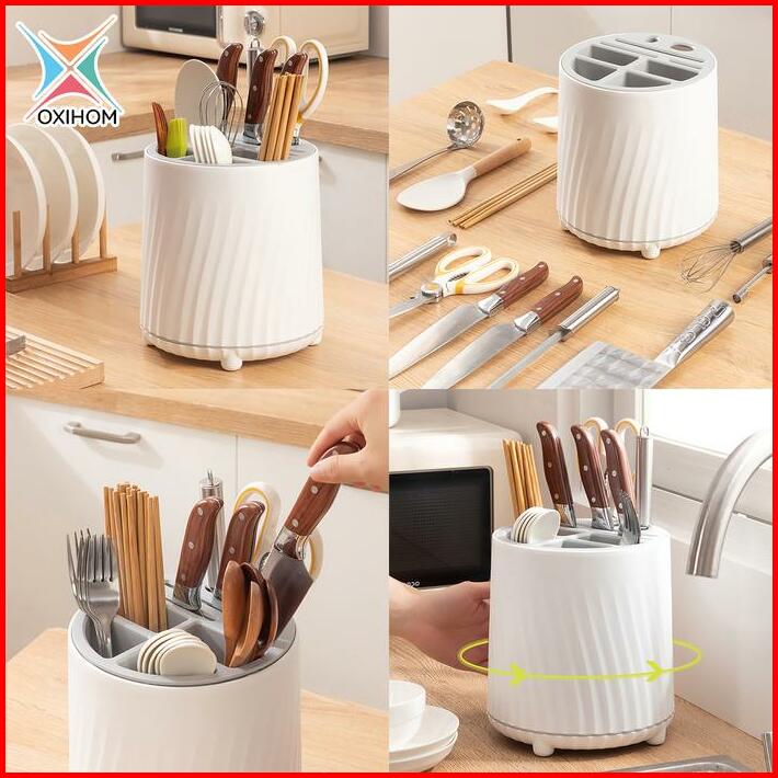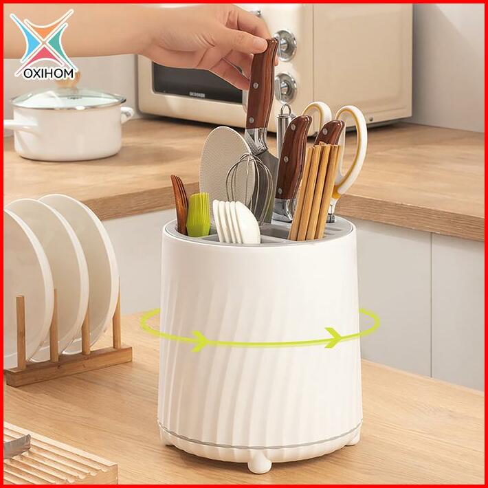 Oxihom Tempat Sendok Garpu Putar Tempat Pisau Rak Dapur Putar Plastik