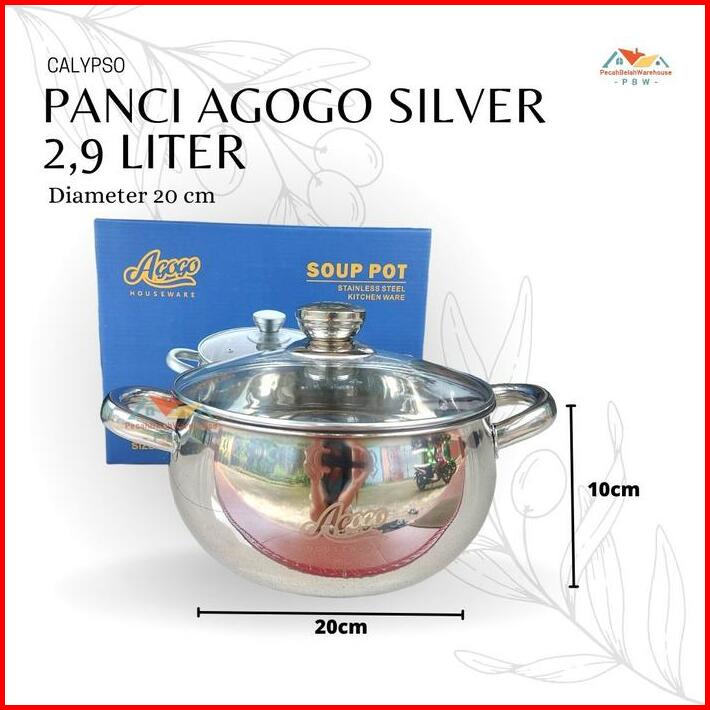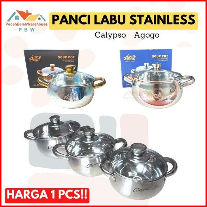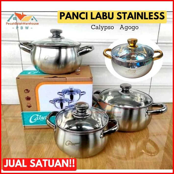 1pcs Panci Stainless Calypso Agogo Panci Labu Stainless Tutup Kaca Panci Mpasi Panci Masak