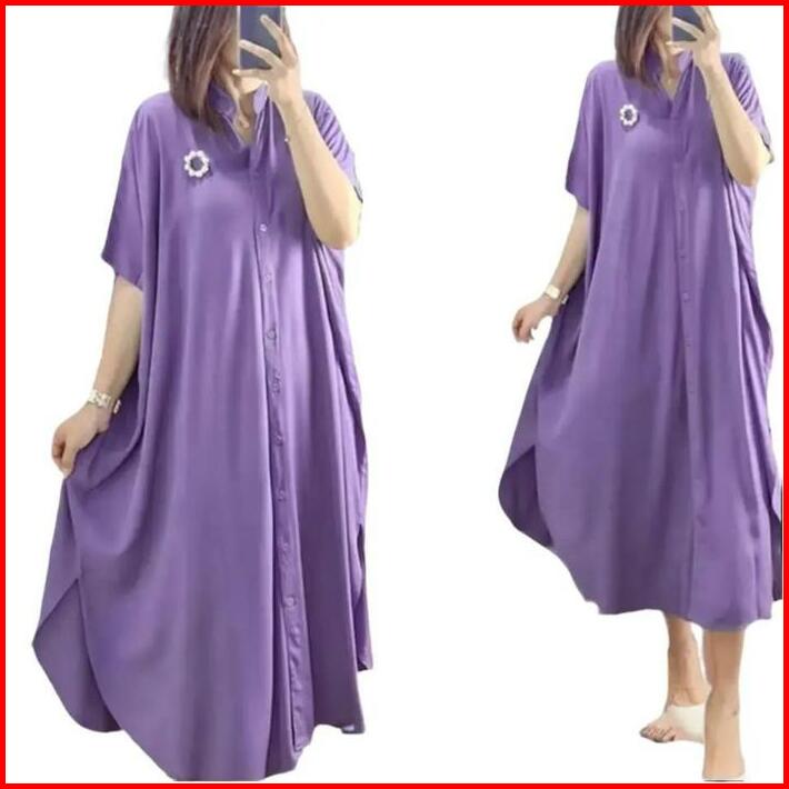 Dress Jumbo Kalong Full Kancing Hidup Daster Ukuran Xxxl Lebar Dada 140 Cm Wanita Kekinian Busui Rayon Bumil Ibu Hamil N
