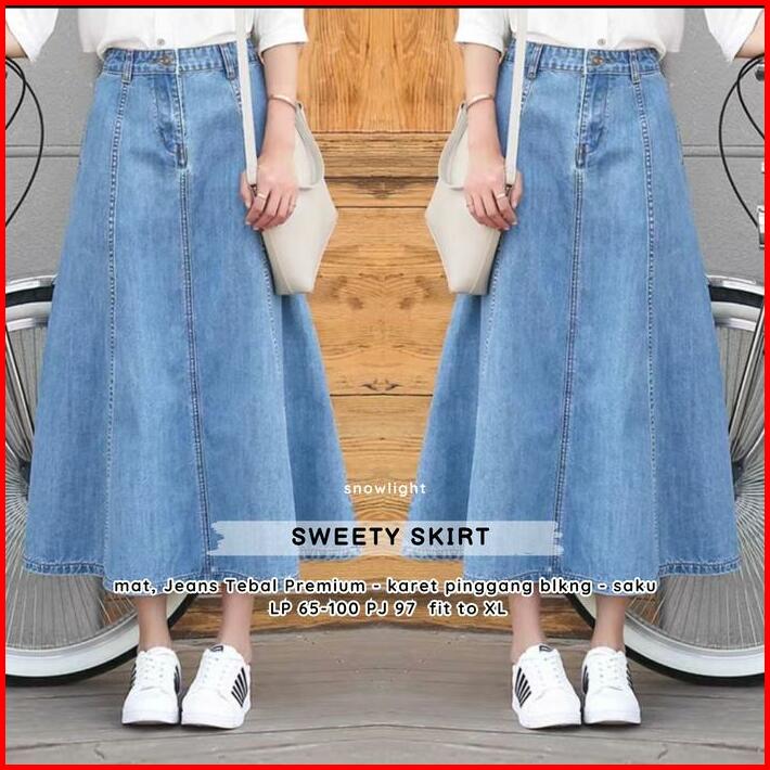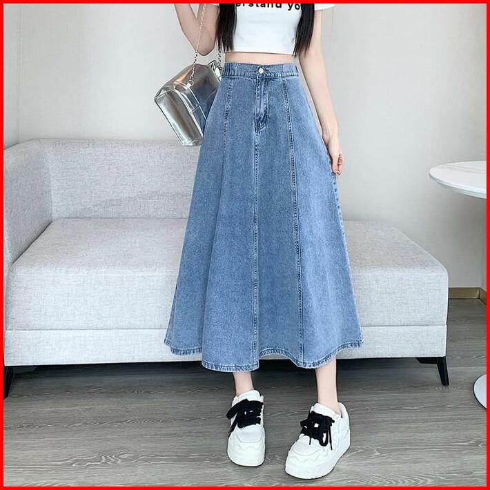 Jiso Rok Jeans Wanita Haigwaist A-line Korean Style 7 8